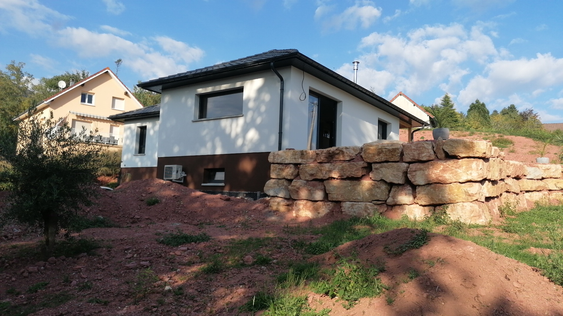 Aucun regret d’avoir fait confiance au constructeur Stéphane berger. Ayant construit seule j’avais quelques appréhensions mais j’ai été très bien entourée par toute l’équipe très professionnelle de Stéphane berger. Merci à eux. Présents dès que besoin encore deux ans après la construction. Seul point négatif c’est d’avoir pris l’entreprise Ehrhardt Cheminées Colmar pour mon poêle à granulés qui est régulièrement en panne et qui ne me trouve aucune solution. Je recommande ce constructeur.